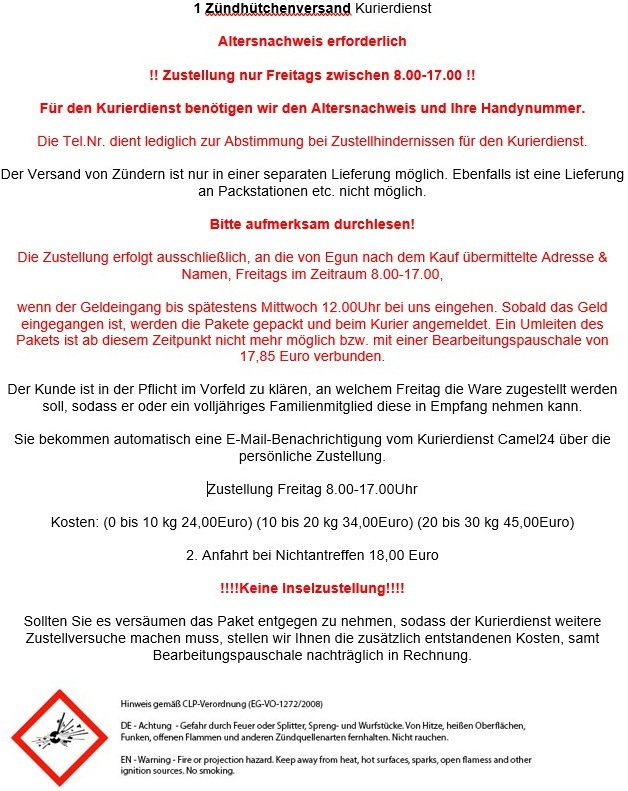 !!!Wir versenden ausschließlich an die von Egun während des Kaufes übermittelte