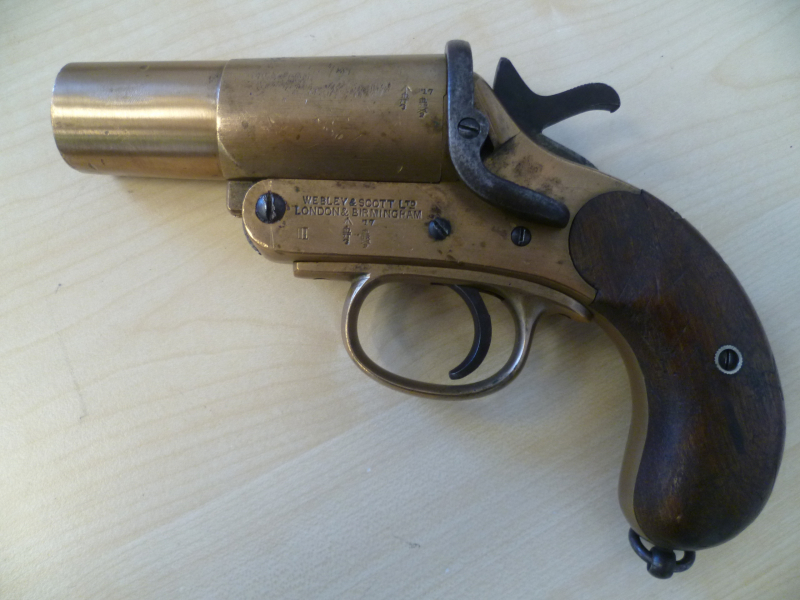 Signalpistole aus WKI-Zeiten mit äußerlich normalen Gebrauchsspuren in guter Erhaltung.