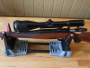 Auf der Waffe montiert ist ein Zielfernrohr der Firma Nickel Marburg 2,5-9x50 Abs. 1 auf einer Suhler Einhag Montage. Die Waffe ist mit einem einstellbaren Abzug ohne Stecher ausgerüstet, der trocken und sauber bricht. Der Abzugswiderstand ist einstellbar. Das Trommelmagazin ist ohne Schäden und Risse. Ein Ersatzmagazin kann zusätzlich erworben werden. Die Lauflänge ist 59 cm, Abzug zum Schaftende ist 36,5 cm.