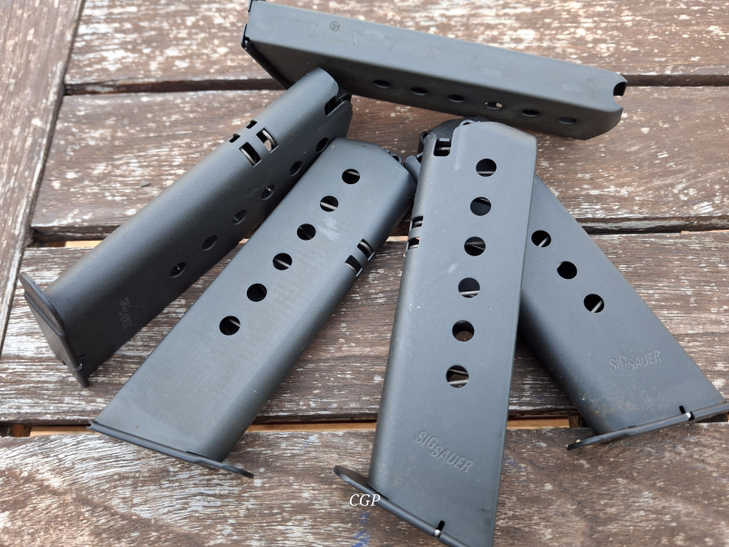 -------------------------------------------------- Sonderpreis solange der Vorrat reicht !!! Modell / Marke : Sig Sauer P220 - Classic Line & X-Serie Teil : Magazin, deutsche Sig Sauer Fertigung , oben liegender Magazinhalter Kaliber :.45 ACP Zustand : fabrikneuer Originalzustand phosphatierte Oberfläche