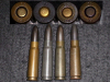 4 Kurzbahnpatronen 7,62x39 , verschiedene Bodenstempel , Hülsenlackierungen, Hersteller Ostdeutschland Spreewerke Lübben usw. siehe FOTO, eine Patronen als DEKO, miniloch in der Hülse