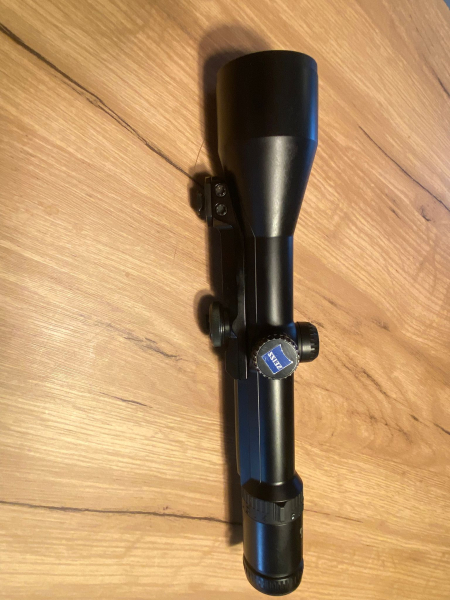 Das Zielfernrohr ist mit einer Zeissinnenschiene ausgestattet, die eine flache Zielfernrohrmontage ermöglicht. Mit angeboten werden die montierten Schwenkmontageoberteile (s. Bilder).