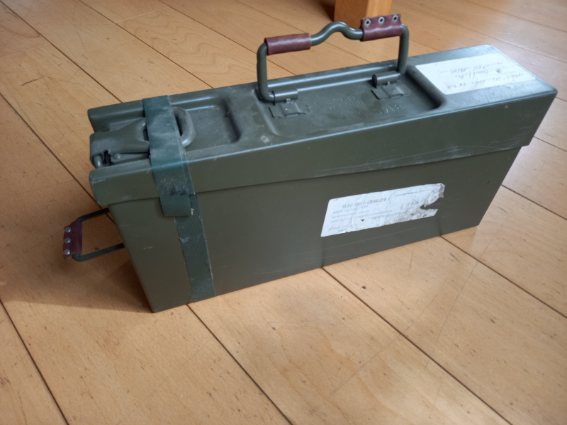 Gürtfüller für MG. In einer nagelneuen Gurtkiste. Kiste noch mit Panzertape vom Lager verschlossen. Da ich die Kiste nicht geöffnet habe müsste alles komplett sein und funktionieren.