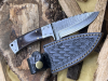 Typ: Handgefertigtes Jagdmesser mit über 200 Lagen Damaststahl. Durchgehende Full Tang-Damastklinge, Walnussholzgriff, Damast-Parierelement. Inklusive Lederscheide.