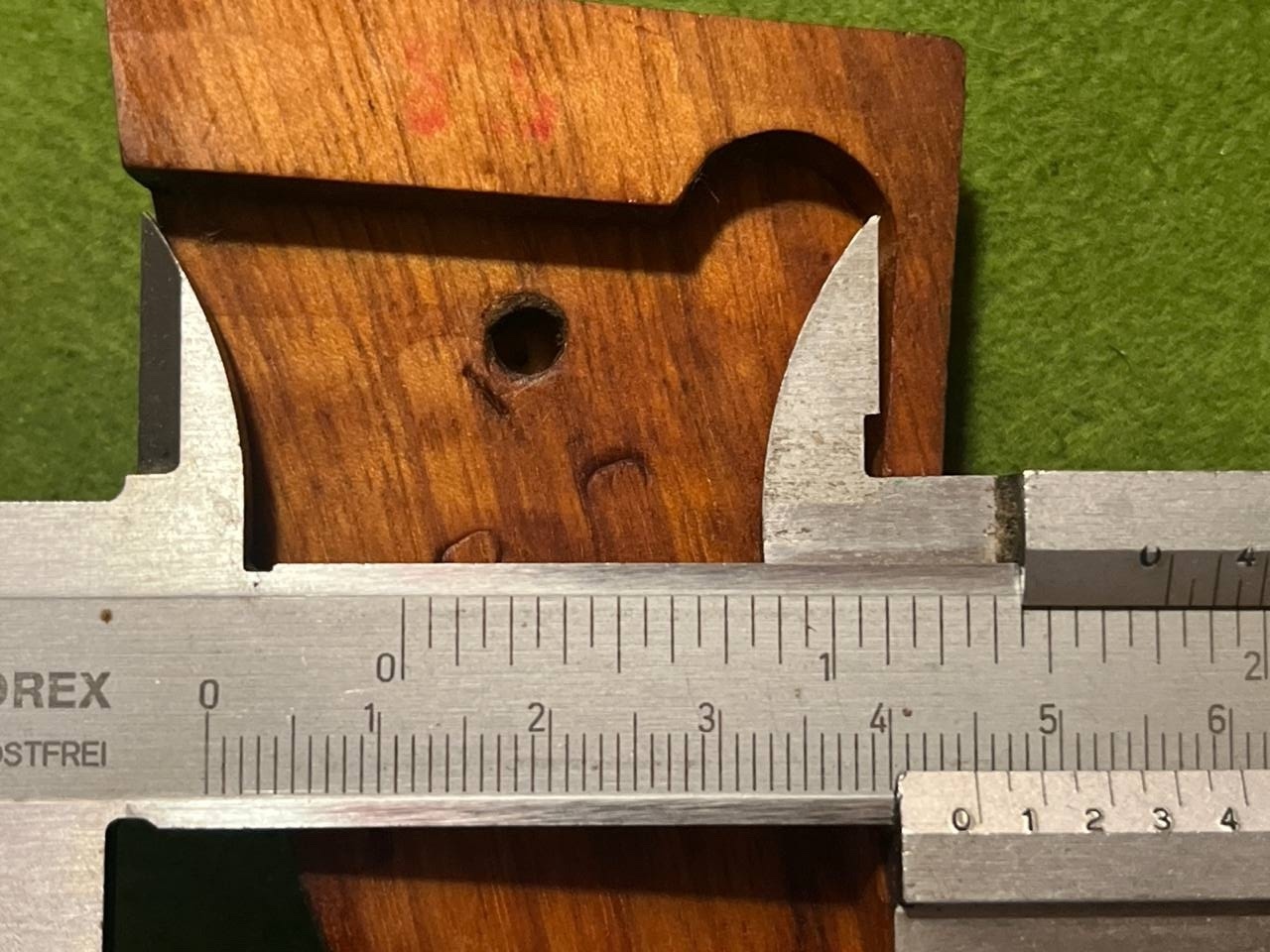 die mit 45mm. etwa 10mm. mehr als sie S&W RB hat, als auch den Abstand zwischen Boden und Schaubenloch