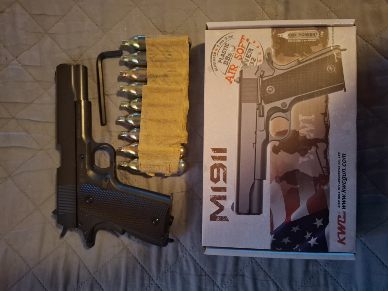 Colt M1911, Zustand Bestzustand, Pistole ungeschossen, OVP vorhanden. Wurde in Vitrine verwahrt.