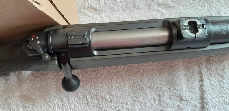 Repetierbüchse Mauser M12 extrem, KAL 308 Win. Direktabzug, Kimme + Korn, 3- Stellungssicherung, Lauflänge 51 cm, 5 Schussmagazin, Polymerschaft mit Soft-Touch- Beschichtung. Extra große Kammergriffkugel für optimale Kontrolle. Verriegelung direkt im Lauf. Montiert ist eine EAW Schwenkmontage (auf der Waffe war ein Zeiss- Glas (Duralyt 3-12x50) und ein Drückjagdglas Ranger 1-6x24). Die Montageringe werden mit der Waffe abgegeben. S. hierzu Bilder der Waffe.
