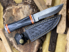 Typ: Handgefertigtes Jagdmesser mit über 200 Lagen Damaststahl. Durchgehende Full Tang-Damastklinge, Holzgriff. Inklusive handgenähter Lederscheide.
