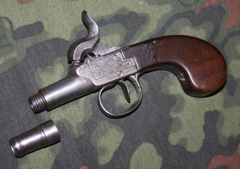 Sie bieten auf eine mir unbekannte alte Perkussions Vorderladerpistole. Das gute Stück ist im sichtlich guten Zustand, das Schloss funktioniert. Etwas für den Sammler und Kenner.