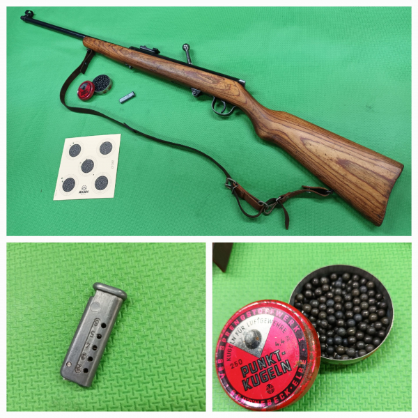 WEIHNACHTSSCHNÄPPCHEN :::::::::::::::::::: Telefon: 07356-9509284 .......1. Haenel Suhl ,, Modell 49a ,, Luftgewehr Karabiner / Kal. 4,4mm / Waffe schießt !!! LG wurde auf 6m bei uns im Haus Probe geschossen = Funktioniert tadellos. Ohne F im Fünfeck. Tragegurt gibt es mit dazu + DDR Munition und 1. Magazin. Die Waffen Sicherung funktioniert tadellos. Buchenholzschaft Nummeriert / Oberfläche: brüniert aber Rostfrei / Gesamtlänge: 106,5 cm.......Ich biete KEINE Sammelbestellungen an. Jeder Artikel wird einzeln versendet. Keine Haustürgeschäfte. Ich schließe jegliche Sachmangelhaftung aus. Die Haftung auf Schadensersatz wegen Verletzungen von Gesundheit, Körper oder Leben und grob fahrlässiger und/oder vorsätzlicher Verletzungen meiner Pflichten als Verkäufer bleibt uneingeschränkt.......Zustandsbeschreibungen unterliegen immer einer persönlichen Betrachtung bzw. Einschätzung, im Zweifelsfall sind die Bilder in der Auktion ausschlaggebend. Viel Spaß und beachten Sie bitte auch meine anderen Auktionen. Differenzbesteuerung nach § 25a UStG. Die Waffe ist frei ab 18. Jahre erwerblich und NICHT EWB-pflichtig.......Kein Auslandsversand möglich.......KEIN internationaler Versand (NO international shipping) MFG