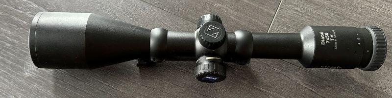Angeboten wird ein Zielfernrohr von Zeiss aus der Serie Diatal Classic 7x50 mit Leuchtpunkt und Blaser Sattelmontage.