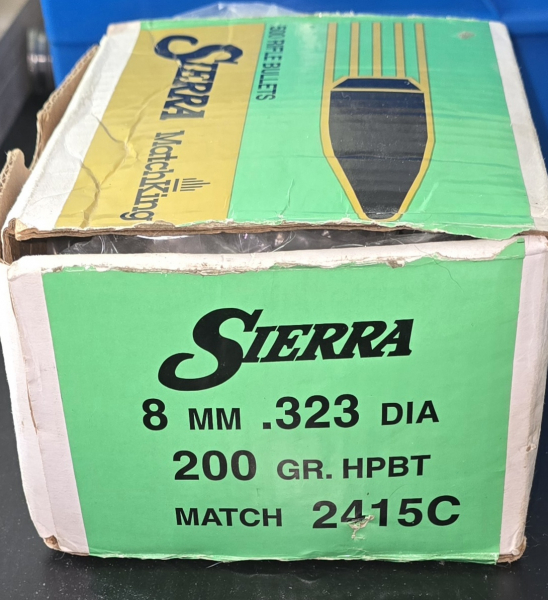 Hallo, sie bieten hier auf Sierra Matchking Geschosse. 500 Stück, 8mm, .323Diameter, 200Gr. HPBT. Nur der Originalkarton wurde geöffnet.