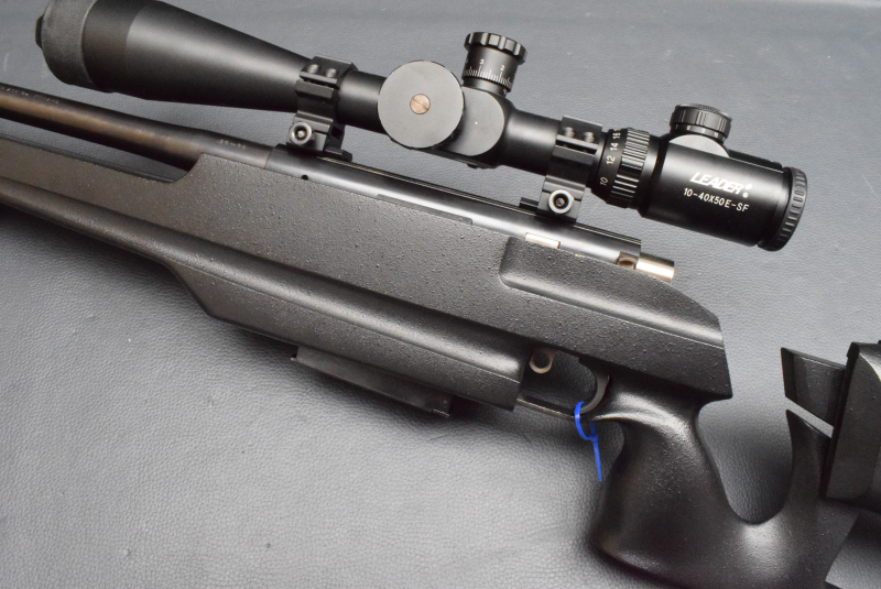 bearbeitet und die Feder etwas angekratzt (Foto). Montiert mit Leader 10-40×50 mit beleuchtetem Mill-Dot-Absehen, seitlichem Paralaxenausgleich