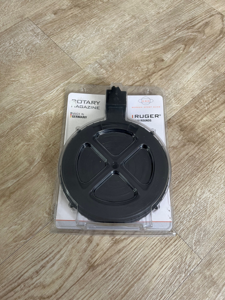 Ich biete ein kaum gebrauchtes Trommelmagazin für eine SL-Büchse Ruger 10/22 und baugleiche Modelle im Kaliber .22 L.R. Das Magazin ist neuwertig und hat eine Kapazität von 110 Schuss. Ich hab es 1x ausgepackt, für zu fummelig befunden es zu laden und damit nicht mehr genutzt. Fans können jetzt das Teil gerne haben. Da es sich für ein Magazin für Randfeuerpatronen handelt, ist es natürlich frei erwerbbar.