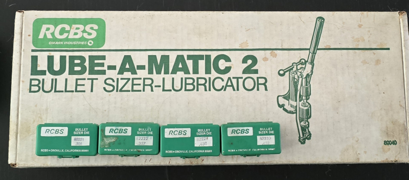 Hallo, ich biete hier eine RCBS Lube-A-Matic 2 Presse mit Kalibriermatrizen in den Kalibern .356, .357, .430 und .452 an.