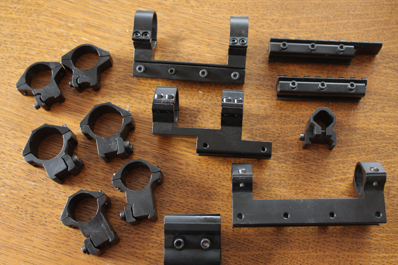 Zum Verkauf kommen verschiedene Montagen für 11mm Schiene und Adapter von 11mm auf 22mm bzw. Picatinnyschiene. Es sind eigentlich alle Bestzustand nur eine Picatinnyschiene wurde gekürzt. Die leichten Flecken auf manchen Montagen kommen von meinem Druckluftspray, das ich zum Abstauben benutzt habe. Habs zu spät gesehen. Kann man aber leicht wegwischen.