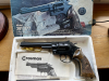 Hier kommt ein sehr alter Crosman Model 38T CO2 Revolver im Kaliber 4,5 mm zur Auktion. Optisch für das Alter sehr gut erhalten, Trockenfunktion einwandfrei. Der Revolver ist nicht auf Dichtigkeit überprüft, Verkauf daher vorsorglich als defekt. Mit OVP, Bedienungsanleitung, siehe Foto. F im Fünfeck vorhanden.