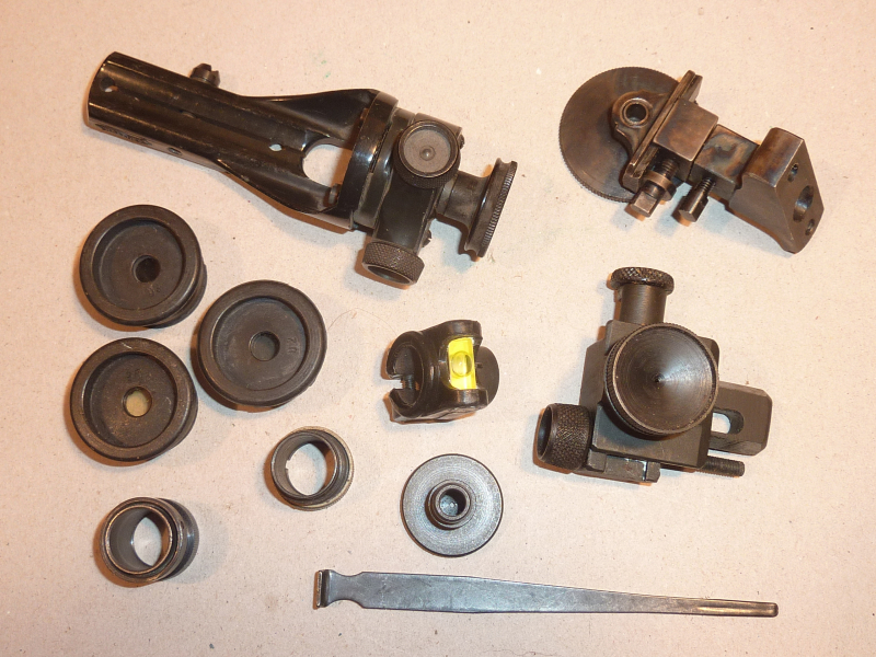 2 sehr schöne verschiedene Diopter und ein Diopterbock sowie mehrere Optische Aufsätze und ein Kornaufsatz mit Libelle