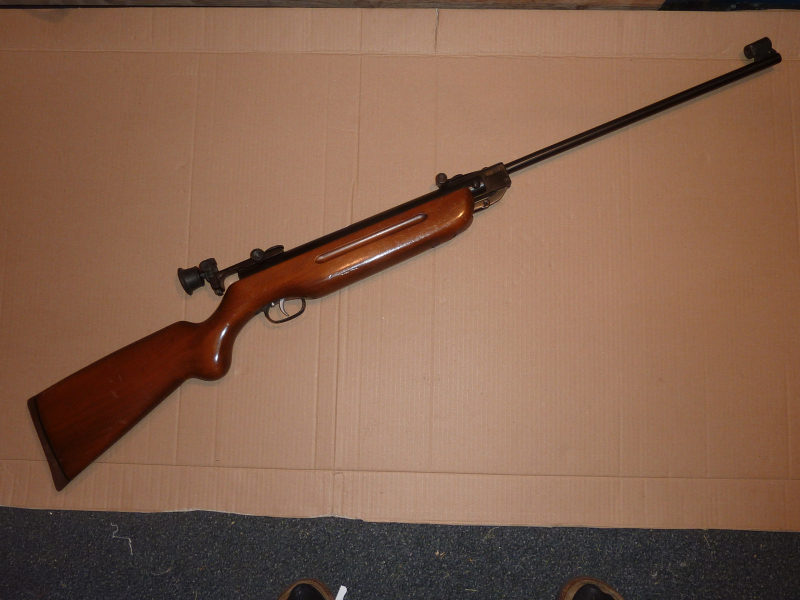 Diese legendäre Luftbüchse mit Laufverriegelung wird schon über 60 Jahre gebaut und ist in Schussleistung und Kraft unübertroffen. Es hat nur geringe Benutzungsspuren und ist mit Diopter und Korntunnel versehen. Die Korne kann man auswechseln. Der Nussbaumschaft ist mit einer Gummischaftkappe versehen. Beste Schussleistung! Gesamtlänge 113 cm, Lauflänge 50 cm. Ca. 4 Kg schwer!