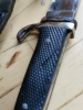 Klinge noch gut erhalten, das Leder noch weich und die Scheide im guten Zustand.