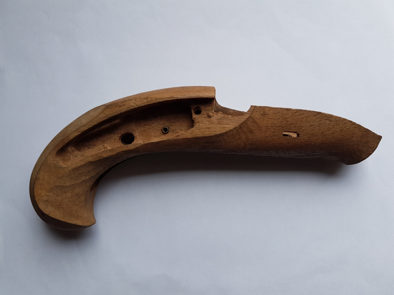 Der Nussbaumschaft hat bereits alle Fräsungen, Borungen und wurde so vor etwa 30 Jahren