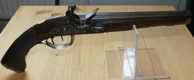 Originale Steinschlosspistole Die Pistole Kommt aus England um 1790. Der gezogene Lauf trägt Defence 2 Signatur, auf der Schlossplatte GAG. Im Schaft ist eine Aussparung für Kugeln oder Pistons angebracht. Den Zustand entnehmen Sie bitte den Fotos, die Bestandteil der Beschreibung sind. Es ist möglich, dass sich die Waffe, zusammen mit einer zweiten Pistole, ursprünglich in einem der damals häufig verwendeten Kästen befand denn auf dem Lauf ist die Nr. 2 angegeben. Keine Garantie, Umtausch oder Nachverhandlung. Portokosten EU nach Aufwand.