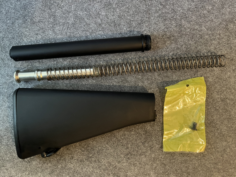 Verkaufe einen A1 Hinterschaft inklusive Buffer, Buffertube und Buttstock-Screw. Brownells Artikel "AR-15 Rifle Receive Extension & Buffer Kit" und "AR-15 Buttstock Assembly - Black - M16A1". Somit alles vorhanden, um ein bestehendes AR15 umzubauen.