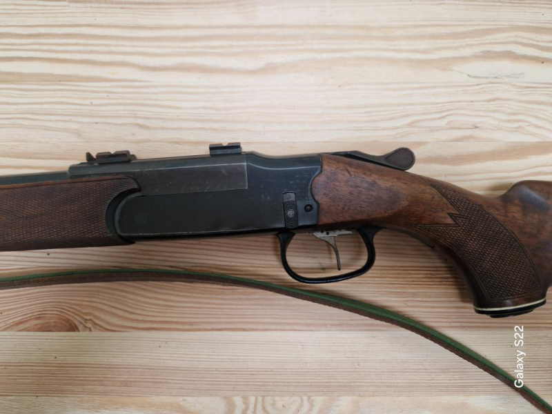 Voere Bockbüchsflinte mit freiliegendem Kugellauf und separater Kugelspannung (wird über den Spannhebel betätigt). Altes bewährtes Modell mit sehr feinem Abzug, nebst Stecher. Aufgrund des Alters unter Ausschluss der Gewährleistung. Tolles Gewehr fürs Niederwildrevier, günstige Montage ist kein Problem.