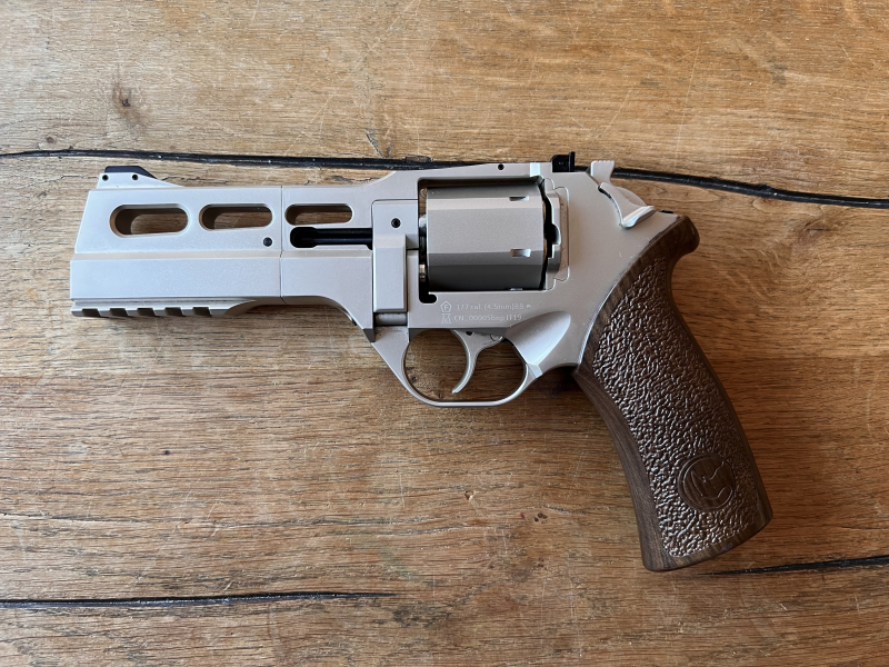 Ich verkaufe aus Nachlass einen CHIAPPA RHINO Revolver in Silber inkl. 6 Patronenhülsen. Der originale Karton ist ebenfalls dabei, jedoch in keinem guten Zustand (Login der Garage). Da er aus einem Nachlass stammen, kann ich nicht viel dazu sagen. Ich habe einige Probeschüsse abgegeben und sie funktionierte einwandfrei, aber wie alt sie ist zB kann ich nicht sagen. Zustand an sich sieht gut aus. Falls noch weitere Fotos gewünscht werden, kann ich diese gerne machen. Bei Fragen gerne melden. Verkauf erfolgt unter Ausschluss der Gewährleistung / Garantie, da Privatverkauf