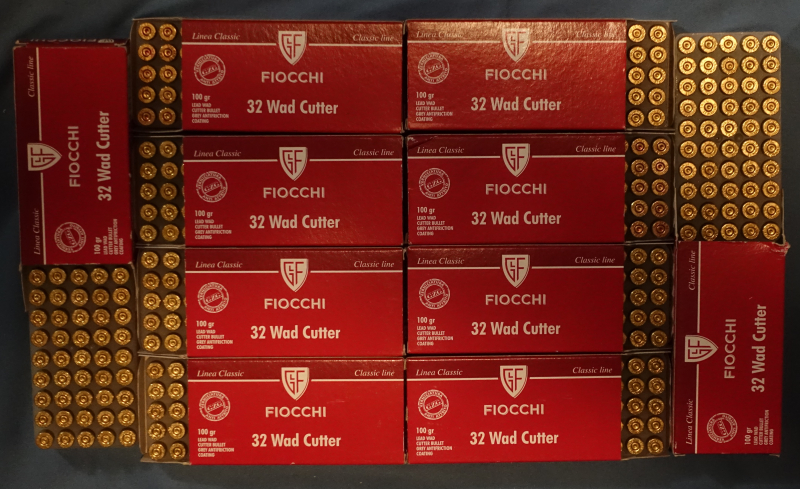10 Schachteln Fiocchi Hülsen .32S&W Wad Cutter, Losnummerngleich