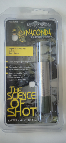 hier biete ich euch PATTERNMASTER Wechselchokes für das Beretta / Benelli 51mm Mobilchoke-System an. Die Ware ist aus den USA frisch bei mir eingetroffen und nagelneu. In Deutschland sehr schwer zu finden. Die Chokes sind für den jagdlichen Einsatz gedacht und eignen sich auch für das Wurfscheibenschiessen. Die Schrotgarbe fliegt sehr gebündelt zusammen und erstreckt sich auch nicht auf eine Länge von 4 bis 5 Metern, sondern bleibt im 2 Meter Bereich gebündelt zusammen. Ich habe 2 verschiedene Chokes. Short Range und Mid Range. Anhand der Einkerbungen am Ende jedes Chokes wird die Flugweite und die Schrotgarbe beeinflusst.