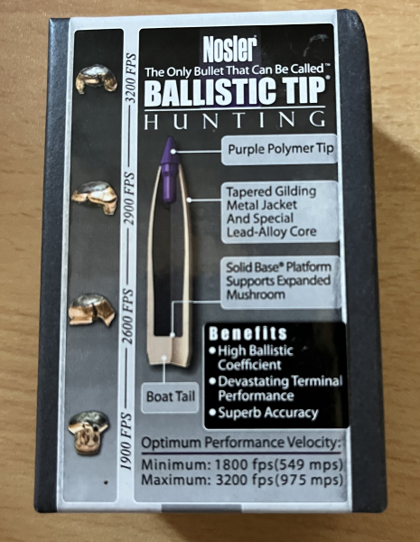 angeboten werden 50 Geschosse von Nosler im Kaliber 6mm .243, 95 grain Ballistic Tip Hunting,