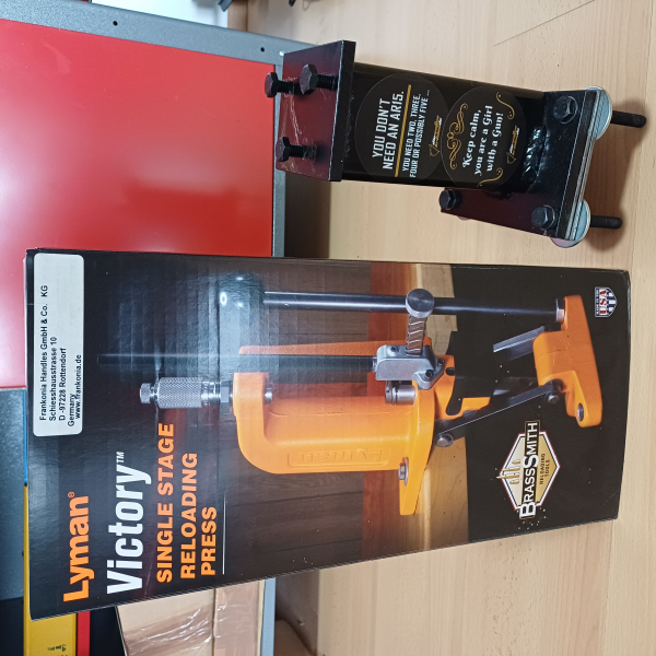 Verkaufe eine Lyman Brass Smith Victory Single Presse im Originalkarton mit allem Zubehör wie auf den Fotos zu sehen ist.