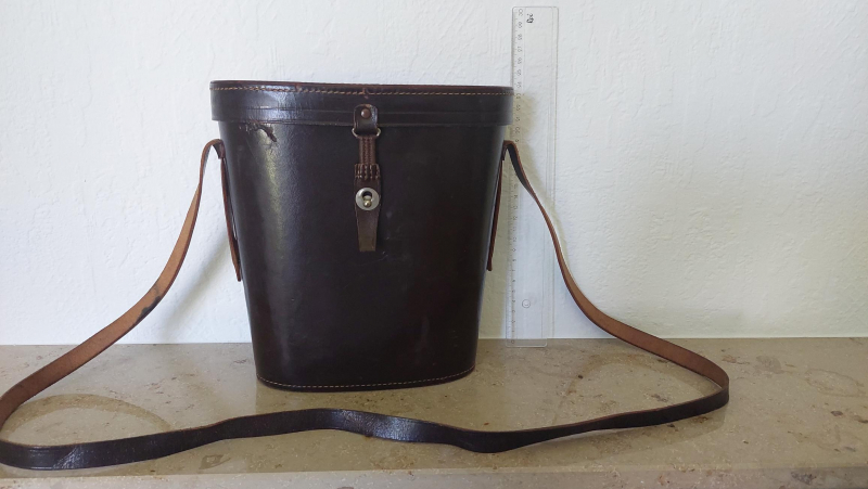 Sie bieten auf einen Fernglasköcher der Firma E.Leitz / Wetzlar / Germany. Höhe 24 cm, Breite 23 cm, Dicke 9 cm. Damit also für große Gläser. Zustand insgesamt ordentlich, mit einigen Macken im Leder.