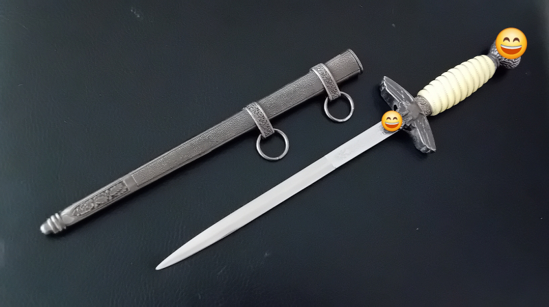 Zur Auktion steht dieser Luftwaffendoch. Alle entscheidenen Zeichen sind vorhanden. Die blanke Klinge ist aus Stahl. Der perlmutfarbene Griff ist mit einer silbernen Schnur/Draht umwickelt. Ohne Gebrauchsspuren. Bild ist Bestandteil der Auktion. Weitere Bilder auf Anfrage...