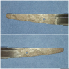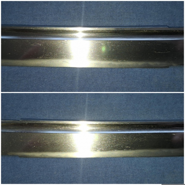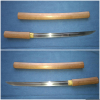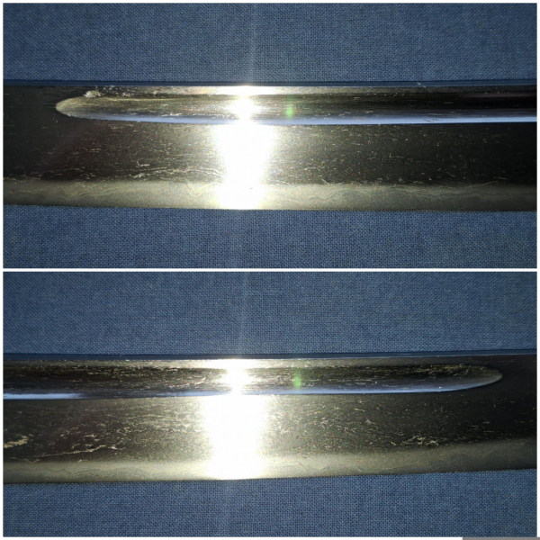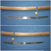 Hamon: Midare Hamon, Nie deki, Sunagashi. Hada: Itame Hada. Nakago: Ubu, Mumei (unsigniert), 1 Mekugi-ana.