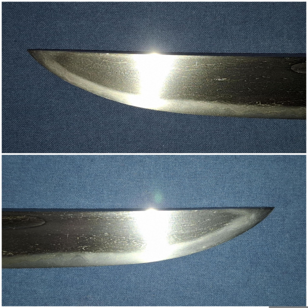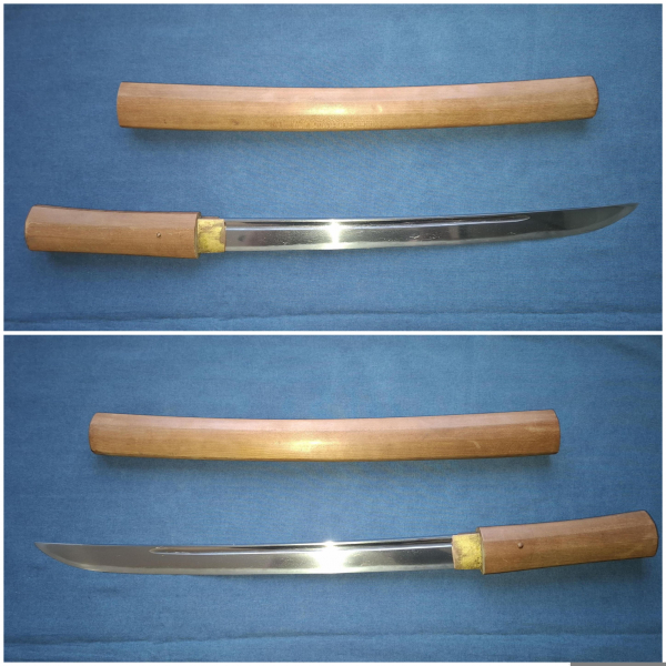 Gesamtlänge Klinge: 55,5 cm. Nagasa: 40,3 cm. Motohaba: 3,15 cm. Motogasane: 7,6 mm. Sori: 7 mm.