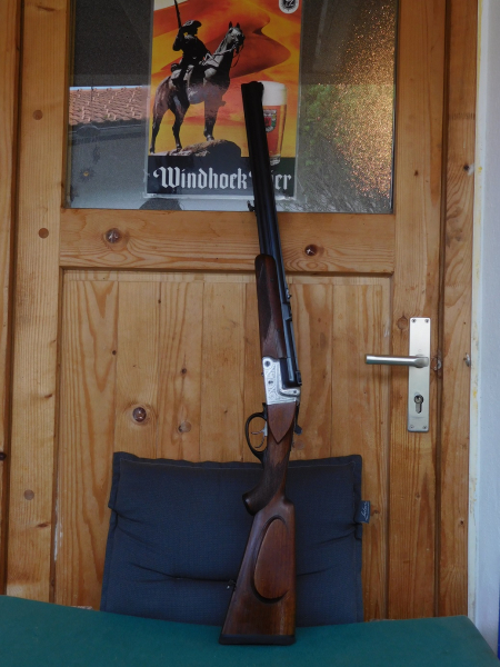 Falls Sie eine Jagdwaffe nur als Werkzeug sehen, mit dem man schädliche Wildtiere tot schießt, dann ist es besser Sie verlassen gleich diese Aktion. Diese BBF wurde 1961 in Ulm gefertigt und beschossen. Für den Kaufpreis hätte man auch einen neuen VW Käfer erhalten. So nun zur Waffe. Dural Systemkasten. Doppelte Laufhacken mit Querriegel. Geteilte Auszieher. Abgesetzte Laufschiene mit Klappvisier für Kugel oder Schrot. Abzugsbügel aus Büffelhorn. Gesamtlänge 100 cn, Lauflänge 60 cm, Schaftlänge 33,5 cm. Schaftkappe ( neu ) 1,5cm. Der Schaft ist fest ohne Risse oder groben Macken. Der Vorderchaft ist zweigeteilt und i. O. Die Läufe sind blank. auf der Suhler Einhack Montage ist ein 6x42 Swarovski A1 mit Höhen und Seiten Verstellung ( 1a Montage ). Das ZF ist voll Jagdtauglich wenn auch auf der Linse, vermutlich innen, kleinste Pünktchen zu erkennen sind. Die meisten würden dies jedoch gar nicht merken, aber da ich nicht jeder bin, muss dies gesagt werden. Verkauf ins Ausland ist über IHREN deutschen Händler möglich. Gewicht ohne ZF ist 2,6 Kg.