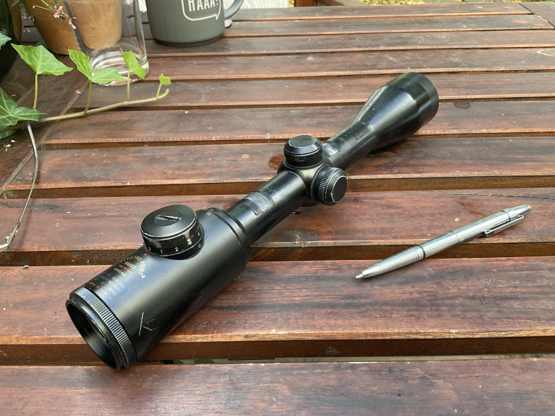 Der Leuchtpunkt im ansonsten offenen Glas (ohne Fadenkreuz, nur Horizontlinie) ist klar und zwischen der Leuchtstärke 1-11 mittels Regler verstellbar. Neue Batterie ist drin und anbei. Das Absehen ist —.— Ich hatte das Glas auf einem LG und hatte damit viel Freude auf bis zu 25m. Höhen- und Seitenverstellung funktioniert.