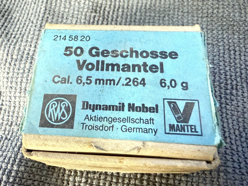 50 RWS Vollmantelgeschosse im Kaliber 6,5mm /.264. 6,0 Gramm