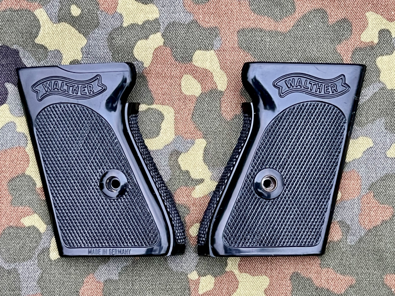 Zum Verkauf stehen ein Paar originale Griffschalen für die Walther PPK in schwarz. Die Griffschalen befinden sich in einem ausgezeichneten Zustand, wie auf den Bildern zu sehen. Ohne Mutter und Schraube. Bei Fragen bitte gerne fragen, weiter Bilder ebenso gerne auf Anfrage.