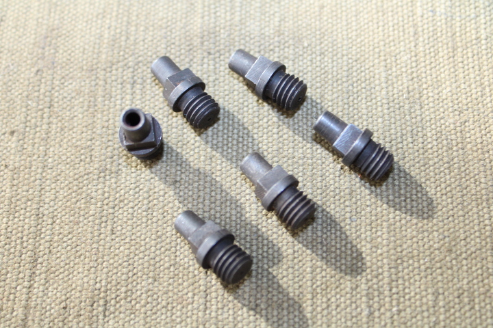 Verkaufe Stahlpistons (6 Stück). Gewinde M8 x 1,25, Gewindelänge ca. 7mm, Gesamtlänge ca. 19mm, für Flügelzündhütchen.