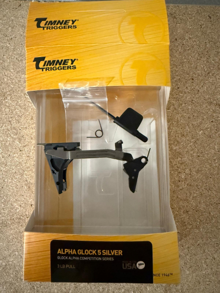 Verkaufe 1x TIMNEY GLOCK Alpha Competition-Trigger für Gen5 (small frame G17, G19, G19X, G22, G23, G26, G27, G34, G45, G47), silber. Wenig benutzt (ca. 100 Schuss damit abgegeben) und in sehr gutem Zustand. Der Glock Steuerblock ist auch dabei, d.h. nur in die Glock einsetzen und loslegen. Lieferung nur innerhalb Deutschland. Wie üblich findet diese Privatauktion unter Ausschluss sämtlicher Gewährleistungen, Sachmängelhaftung und Garantie statt. Keine Rückgabe oder Umtausch möglich. Preisvorschlag möglich.