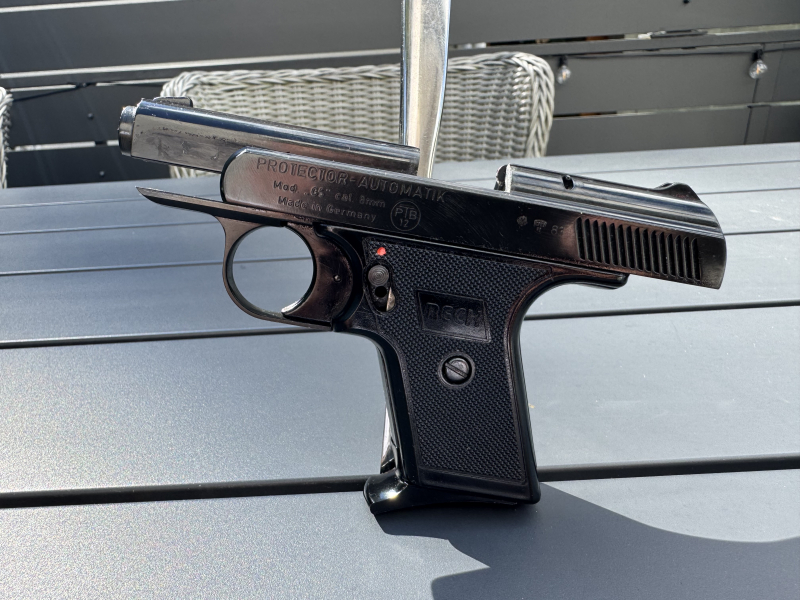 Zum Verkauf steht eine Reck Protector G5, eine kompakte und zuverlässige Schreckschusspistole im Kaliber 8mm K, mit der PTB-Zulassung.