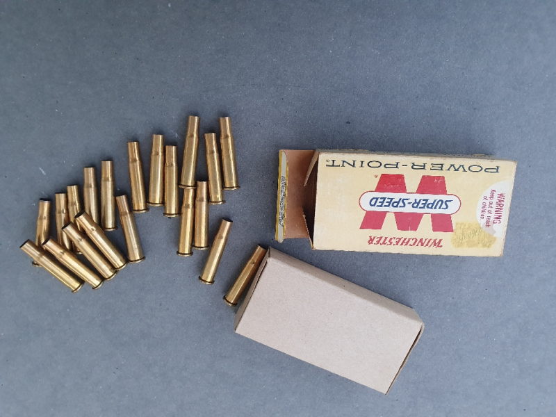 20 Stück Original Winchester Hülsen im Kaliber 32 Winchester Special in der Original-Patronenverpackung, Hülsen sind leer, 1 x geschossene Fabriklaborierungen, ungereinigt abzugeben.