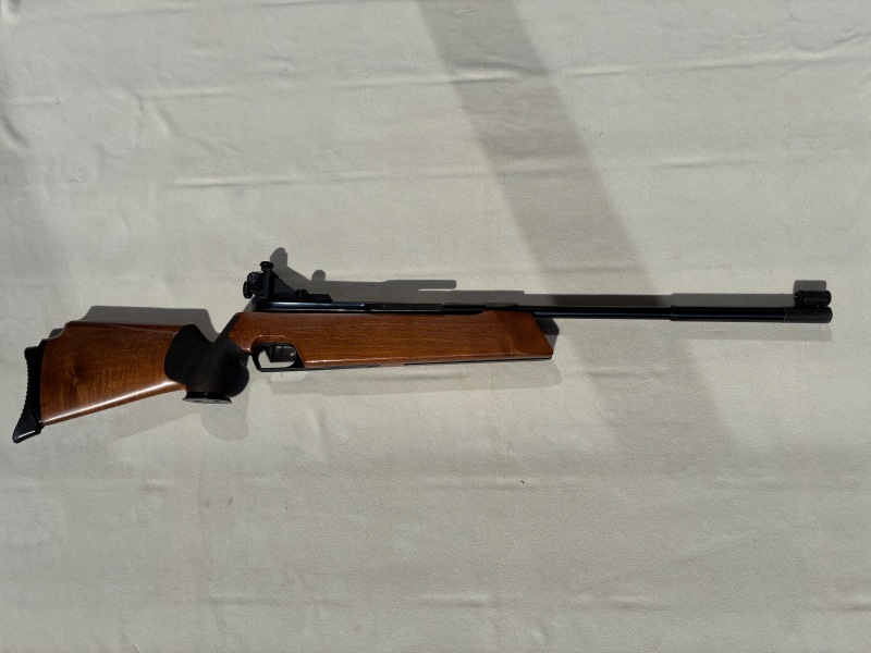 Die Waffe wurde sehr pfleglich behandelt und hat fast keine Gebrauchsspuren. Das System ist vollständig rostfrei, die Brünierung ist makellos, Wie auf einem der Bilder zu sehen ist gibt es am Laufgewicht einen Kratzer, das ist die einzige Macke die dieses Gewehr hat. Der Schaft ist ohne Risse, Absplitterungen und Macken. Diopter und Korntunnel sind Orginalteile. Im Korntunnel ist ein Ringkorn vebaut.Die Kolbendichtung und die Laufdichtungen wurden trotz ihres optisch sehr guten Zustand durch neue Orginaldichtungen von FWB ersetzt. Die Federn wurden belassen. Das Gewehr schiesst tadellos. Fragen beantworte ich gerne, weitere Bilder auf Anfrage. Rückgabe und Gewährleistung schliesse ich aus.