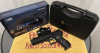 Mit dabei ist die Originale Verpackung, ein passender Pistolenkoffer und ein aufgeschnalltes Red-Dot zum anvisieren.