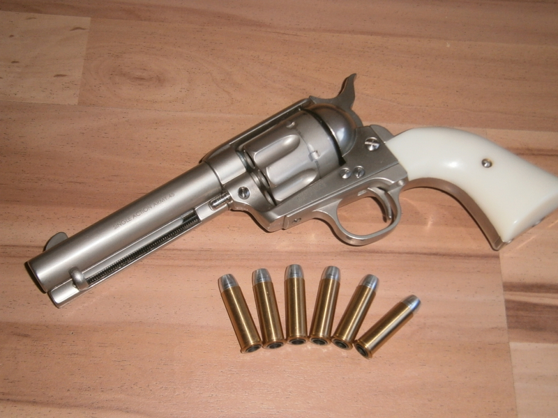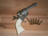 Hallo zusammen, biete euch folgenden Artikel zum Kauf an.Der Single Action Revolver gehört wohl weltweit mit zu den meistbekannten Revolvern. Produziert wurden die Revolver ab 1873 bis 1941 - die Serienproduktion endete mit der Seriennummer 357.859, wurde aber ab 1956 wieder aufgenommen. Vor allem in Filmen über den Wilden Westen sind Single Action Revolver eigentlich immer mit anzutreffen. Bei diesem Airsoftnachbau von King Arms handelt sich um die kurze 4 Zoll Ausführung. Dank besonders präziser Fertigung ist das Airsoftmodell mit sämtlichen Details bestückt und daher auch für Sammler sehr interessant. Besonders die interessante Oberflächenbeschaffenheit im matt-silbernen Finish lässt die Oberfläche des Airsoftrevolvers sehr originalgetreu wirken. Perfekt passend dazu wurden von King Arms die Griffschalen in Elfenbein- bzw. Ivory-Optik gewählt. Diese optischen Features zusammen machen den King Arms Revolver zu einem echten Unikat in jeder Sammlung!
