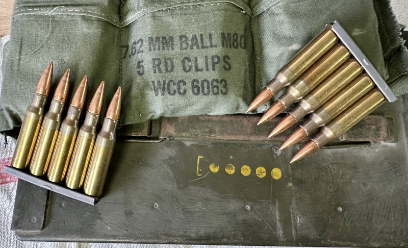 60 Schuss im Kaliber .308 auf Ladestreifen (Stempel "SEY"),