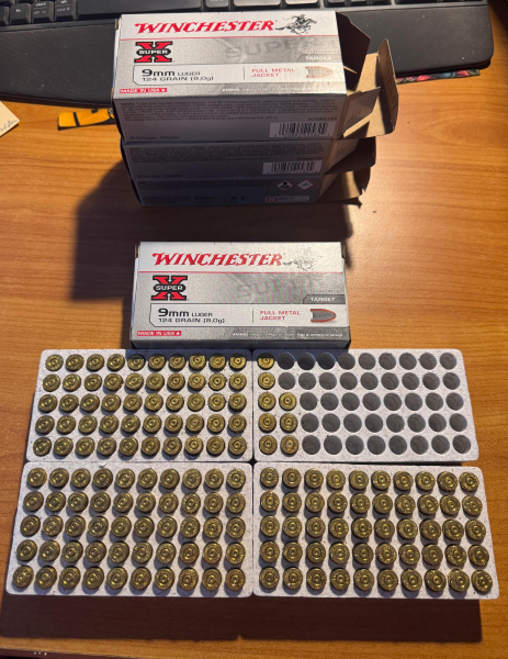 Hiermit verkaufe ich hier 9mm Luger von Winchester abgeschossene Hülsen siehe Foto. In Original Verpackung.